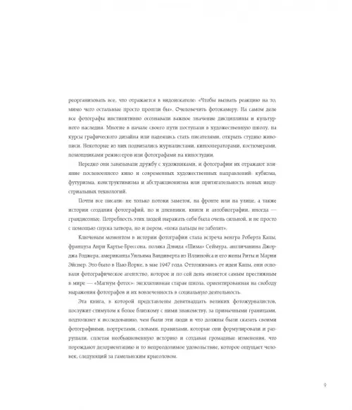 Кто-то из них говорил, что рожден фотографом, другие же выбирали этот путь позже. Они могут быть бесстрашными или эксцентричными, веселыми или грубыми, идеалистами. Но объединяет их одно: все они охвачены глубокой, непреходящей страстью к своей профессии. И они — ?величайшие фотографы своего времени. Фотография для них — ?это вся жизнь, ?а иногда и смерть.