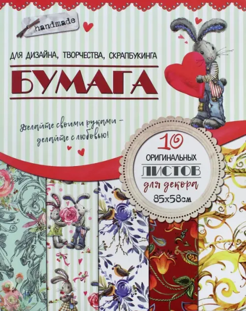 Бумага для дизайна, творчества, скрапбукинга "Зайка", 10 листов, 58х85 см