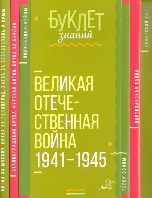 Великая Отечественная война (1941–1945 гг.) — самая страшная и кровопролитная война за все время СССР. В буклете наглядно представлены важнейшие сражения, полководцы и герои войны, партизанское движение. Учебное пособие адресовано учащимся 5–11 классов.