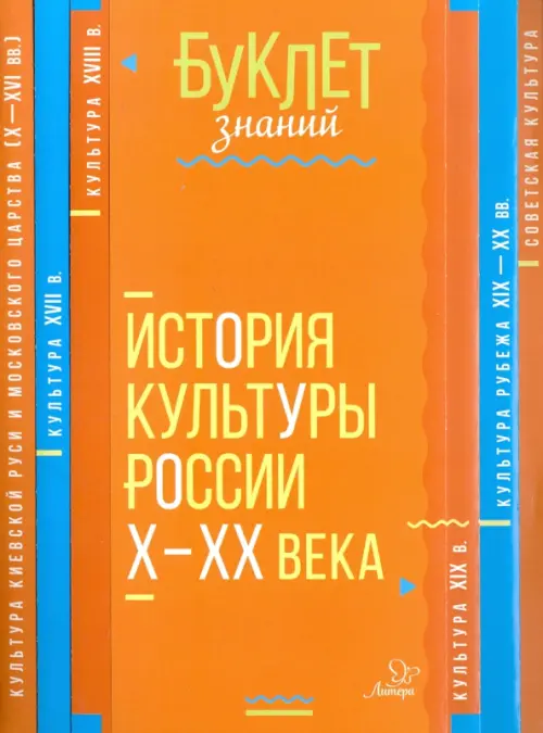 В буклете наглядно представлены все этапы развития культуры в России с X до XX века включительно. Отмечено создание самых важных достижений и произведений в архитектуре, литературе, живописи и музыке. Учебное пособие адресовано учащимся 5–11 классов.