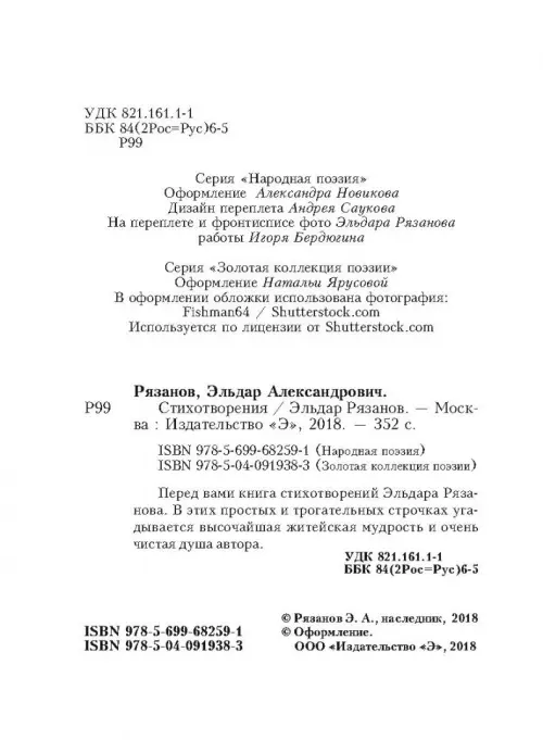 Если вы обнаружили ошибку в описании товара «Стихотворения» (авторы: Рязанов Эльдар Александрович), то выделите её мышкой и нажмите Ctrl+Enter. Спасибо, что помогаете нам стать лучше!