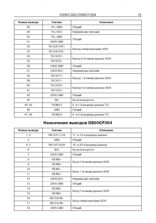 для 18-битных LCD-панелей DS90C363/DS90CF364