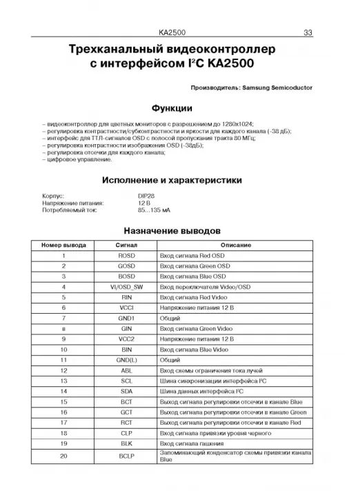 Уникальная особенность справочника заключается в том, что для большинства микросхем приводятся не только основные функции, электрические характеристики, исполнение и назначение выводов, но и схемы включения. Последнее обстоятельство позволит специалисту-ремонтнику не тратить время и деньги на поиск принципиальной схемы монитора, а проанализировать и устранить неисправность, используя только материалы данной книги.