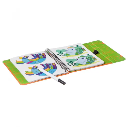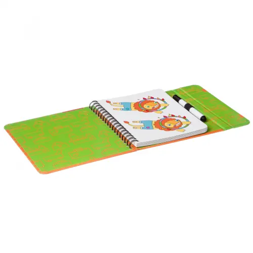 В комплект входит: 15 двусторонних игровых карточек, 30 заданий, маркер на водной основе, которым можно рисовать на карточках, а потом с легкостью стирать.