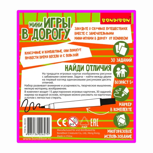 Bondibon: Компактные развивающие игрыЕсли вы обнаружили ошибку в описании товара «Компактная развивающая игра в дорогу. Найди отличия!», то выделите её мышкой и нажмите Ctrl+Enter. Спасибо, что помогаете нам стать лучше!