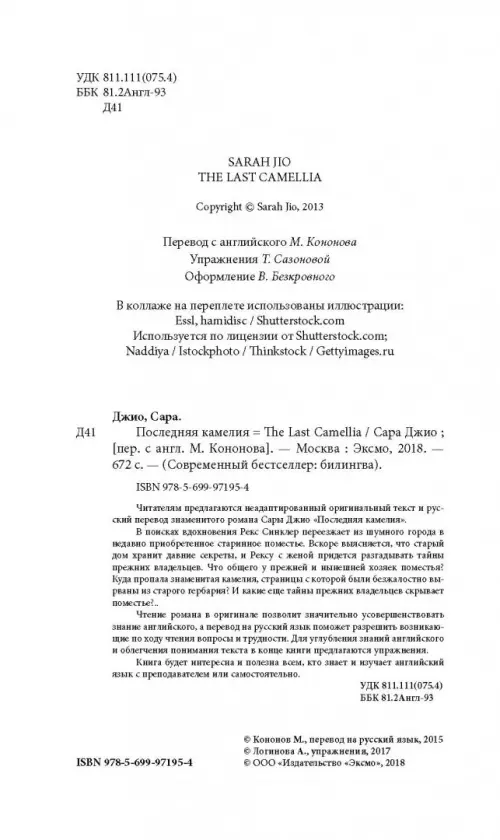 Читателям предлагаются неадаптированный оригинальный текст и русский перевод знаменитого романа Сары Джио "Последняя камелия".