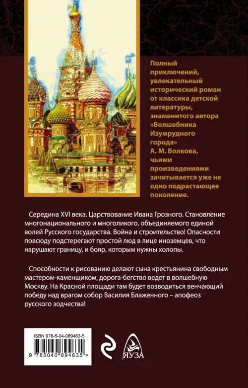 Середина XVI века. Царствование Ивана Грозного. Становление многонационального и многоликого, объединяемого единой волей Русского государства. Война и строительство! Опасности повсюду подстерегают простой люд, в лице иноземцев, что нарушают границу, и бояр, которым нужны холопы. Способности к рисованию делают сына крестьянина свободным мастером-каменщиком, дорога-бегство ведет в волшебную Москву. На Красной площади там будет возводиться венчающий победу над врагом собор Василия Блаженного — апофеоз русского зодчества!