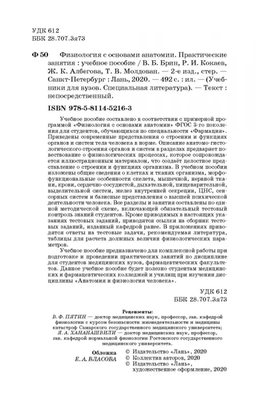 Если вы обнаружили ошибку в описании товара «Физиология с основами анатомии. Практические занятия. Учебное пособие» (авторы: Брин Вадим Борисович, Кокаев Ромеш Иванович, Албегова Жанна Куцуковна, Молдован Татьяна Васильевна), то выделите её мышкой и нажмите Ctrl+Enter. Спасибо, что помогаете нам стать лучше!