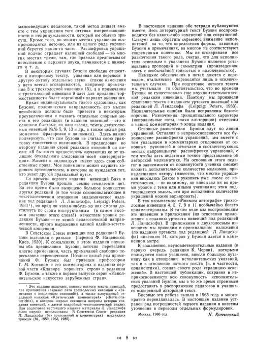 Н. Копчевский. Инвенции И. С. Баха
