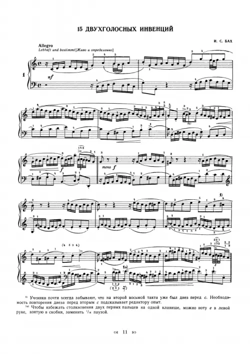 Инвенции для фортепиано. Ноты
