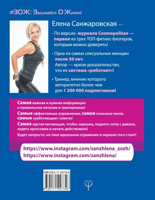 Привыкшая называть вещи своими именами, Елена Санжаровская не обещает мгновенных результатов и не скрывает, что красивая фигура — это многочасовые тренировки и пожизненное соблюдение правил #ПП (кусочек торта можно, если очень хочется). Но твое идеальное отражение в зеркале того стоит!