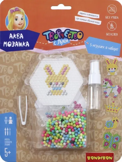 Состав набора: набор пластиковых бусин, пластиковая основа, распылитель воды, карточки-трафареты, пинцет.