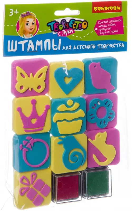 Состав: 10 штампиков из EVA, 2 штемпельные подушки и множество идей!