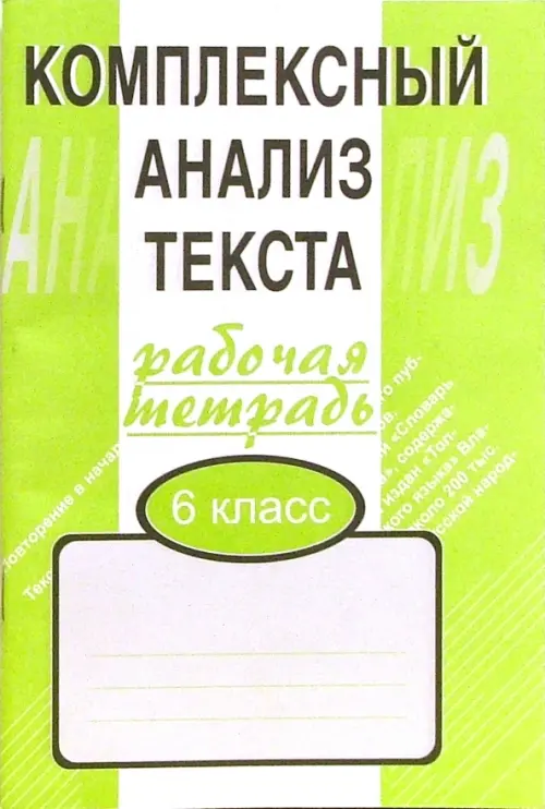 Если вы обнаружили ошибку в описании товара «Комплексный анализ текста. 6 класс. Рабочая тетрадь» (авторы: Малюшкин Александр Борисович), то выделите её мышкой и нажмите Ctrl+Enter. Спасибо, что помогаете нам стать лучше!