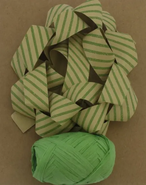 Набор для оформления подарков: декоративный бант из крафт бумаги, плотностью 80 г/м2, с клеевым основанием, размером 5x13 см, декоративная лента из немелованной бумаги, шириной 2,5 см, длиной 10 метров, плотностью 80 г/м2.