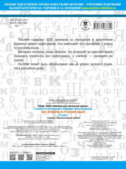 Если вы обнаружили ошибку в описании товара «Русский язык. 2 класс. 3000 примеров» (авторы: Нефёдова Елена Алексеевна, Узорова Ольга Васильевна), то выделите её мышкой и нажмите Ctrl+Enter. Спасибо, что помогаете нам стать лучше!