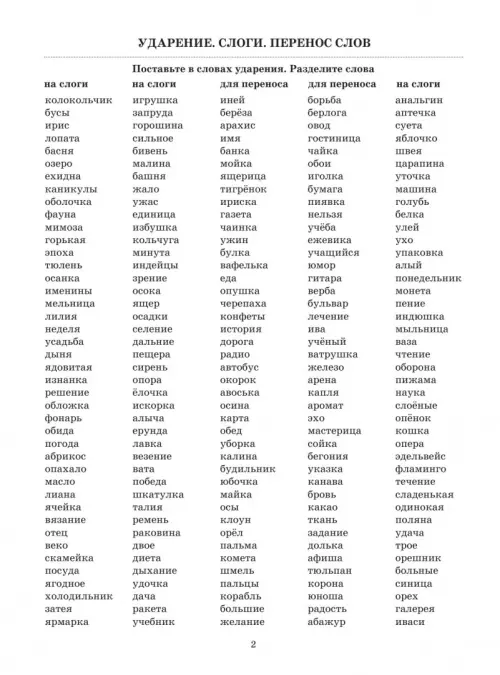 Пособие содержит 3000 примеров на повторение и закрепление основных правил орфографии. Оно охватывает всю программу 2 класса по русскому языку.