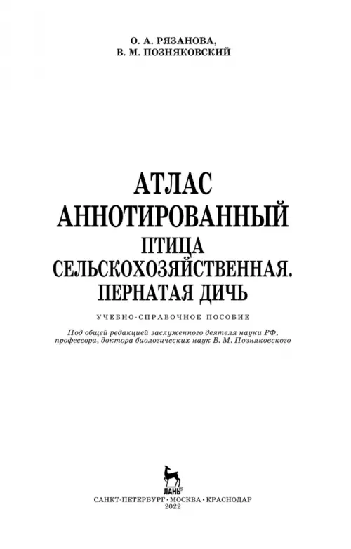 Если вы обнаружили ошибку в описании товара «Атлас аннотированный. Птица сельскохозяйственная. Пернатая дичь. Учебно-справочное пособие» (авторы: Позняковский Валерий Михайлович, Рязанова Ольга Александровна), то выделите её мышкой и нажмите Ctrl+Enter. Спасибо, что помогаете нам стать лучше!