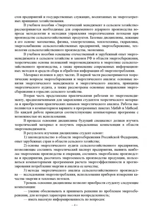 Предназначено для студентов аграрных вузов, обучающихся по направлению «Агроинженерия» (магистры и аспиранты). Можно использовать при образовательной подготовке и повышении квалификации энергоаудиторов для проведения энергетических обследований в сельском хозяйстве.
