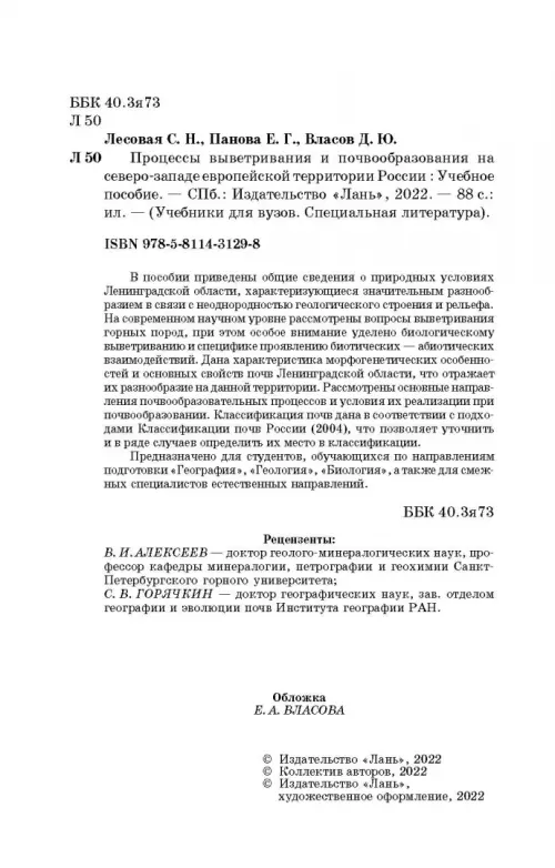 Если вы обнаружили ошибку в описании товара «Процессы выветривания и почвообразования на северо-западе европейской территории России» (авторы: Власов Дмитрий Юрьевич, Лесовая Софья Николаевна, Панова Елена Геннадьевна), то выделите её мышкой и нажмите Ctrl+Enter. Спасибо, что помогаете нам стать лучше!