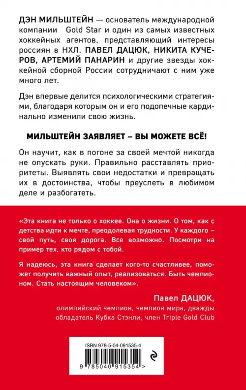 Перед вами книга знаменитого хоккейного агента Дэна Мильштейна, благодаря которому в престижнейшую хоккейную лигу NHL попали российские звезды — Артемий Панарин, Никита Зайцев, Никита Нестеров, Павел Дацюк и многие другие. В подростковом возрасте Дэн работал в "Макдоналдсе", совмещая работу с учебой, однако справился, преуспел и стал финансистом №1 в области банков и недвижимости США. Теперь Дэн рассказывает, как ему это удалось.
