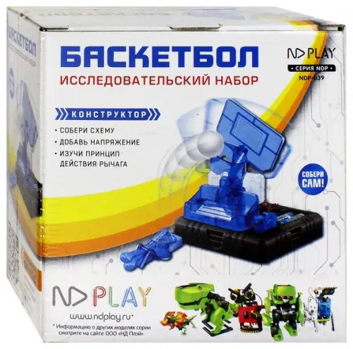 С электронным набором "Баскетбол" ребёнок самостоятельно сконструирует катапульту и научится метко закидывать снаряд в корзину. Задача юного инженера — собрать подвижную платформу, а затем правильно рассчитывать направление и силу броска, чтобы раз за разом мяч попадал в цель.