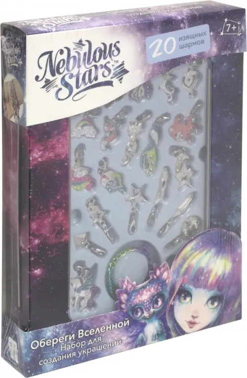Отправляйся в увлекательное путешествие по бесконечной галактике вместе с девочками-звездочками Nebulous Stars! Галактика Nebulous Stars - это сказочный мир творчества, релакса и медитации! Девочки готовы приоткрыть завесу тайны и раскрыть секреты космической силы и магии, проводить тебя в мир добра, красоты и положительных эмоций! Создавай милые, изящные шармы – маленькие обереги Вселенной. Они придадут "особое звучание" твоему образу. Используй их так, как подскажет тебе твоя фантазия. Набор из 20 высококачественных металлических шармов, красочно нанизывающихся на радужный браслет.
