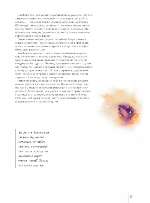 Простыми упражнениями, понятными рекомендациями и подробными инструкциями автор открывает новые горизонты и навсегда меняет представление о работе акварелью.