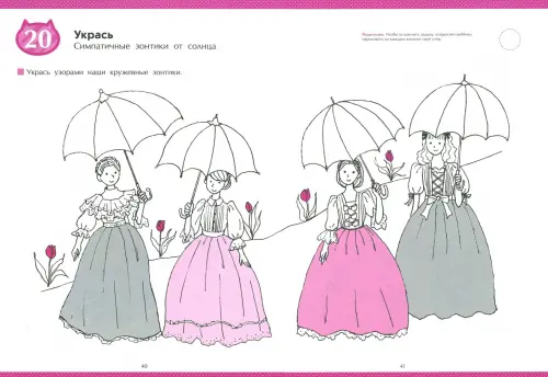 Серия «Kumon. Занимательное рисование» состоит из двух тетрадей и поэтапно помогает развить креативное мышление. Тетради зеркально повторяют друга друга по темам и видам заданий. Меняются только картинки, с которыми нужно работать, а также наклейки для мотивации ребенка (в одной тетради кошки, в другой — собаки).