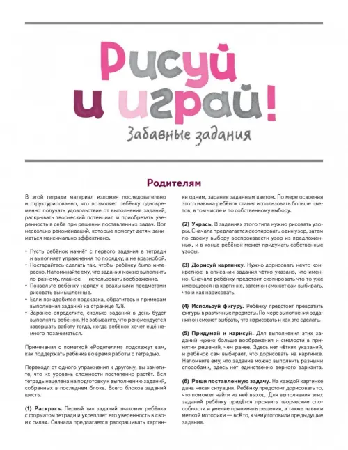 Если вы обнаружили ошибку в описании товара «KUMON. Рисуй и играй! Забавные задания», то выделите её мышкой и нажмите Ctrl+Enter. Спасибо, что помогаете нам стать лучше!