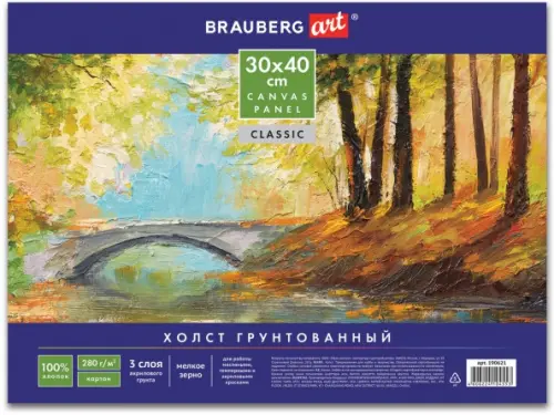 Холст грунтованный на картоне "Brauberg", 30x40 см, 100% хлопок, мелкое зерно