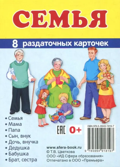 Если вы обнаружили ошибку в описании товара «Раздаточные карточки "Семья" (63х87мм)» (авторы: Цветкова Т. В.), то выделите её мышкой и нажмите Ctrl+Enter. Спасибо, что помогаете нам стать лучше!