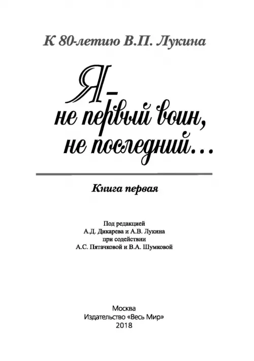"Я - не первый воин, не последний…" К 80-летию В.П. Лукина. Книга первая