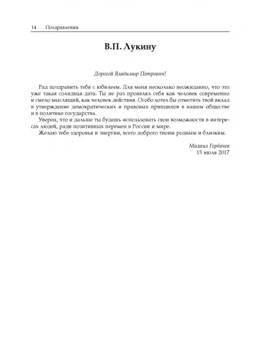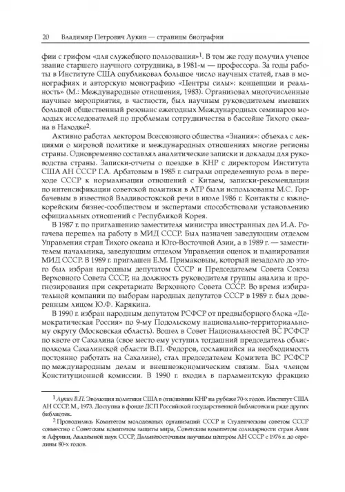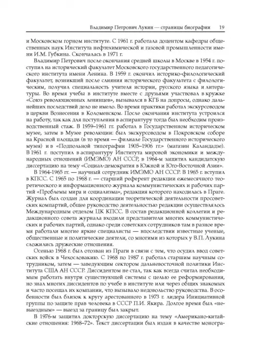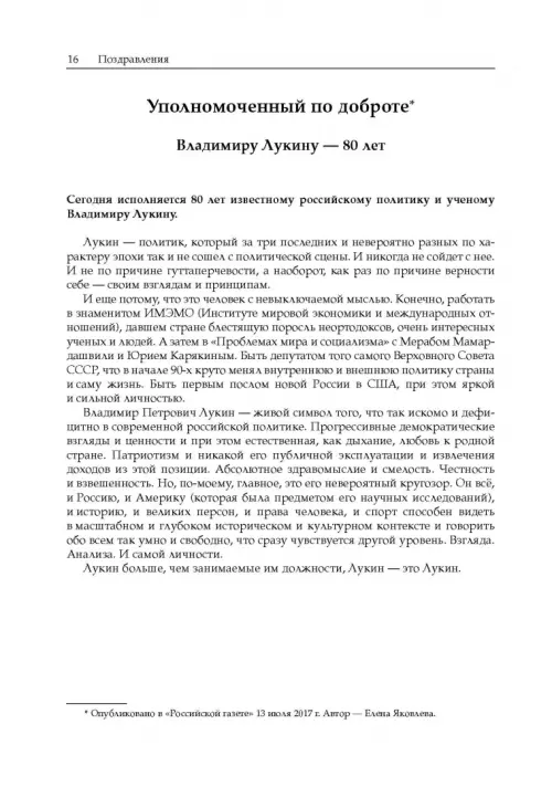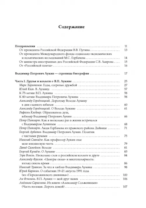 В первую книгу трехтомного издания, подготовленного в связи с 80-летним юбилеем Владимира Петровича Лукина, вошли поздравления, биография, воспоминания друзей и коллег, а также собственные работы В.П. Лукина: научные статьи и главы в монографиях, публицистические статьи, выступления, рецензии и письма, избранные статьи 1994–1995 гг. из сборника «С тревогой и надеждой». Книга проиллюстрирована многочисленными фотографиями, предоставленными составителями.