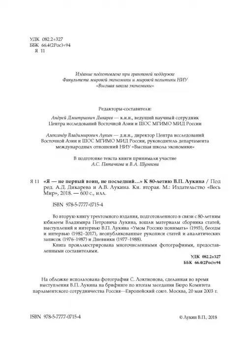 "Я - не первый воин, не последний…" К 80-летию В.П. Лукина. Книга вторая