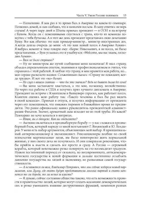 Во вторую книгу трехтомного издания, подготовленного в связи с 80-летним юбилеем Владимира Петровича Лукина, вошли материалы сборника статей, выступлений и интервью В.П. Лукина «Умом Россию понимать» (1993), беседы и интервью (1982–2017), неопубликованные рукописи статей и аналитических записок (1976–1987) и Дневники (1977–1988). Книга проиллюстрирована многочисленными фотографиями, предоставленными составителями.