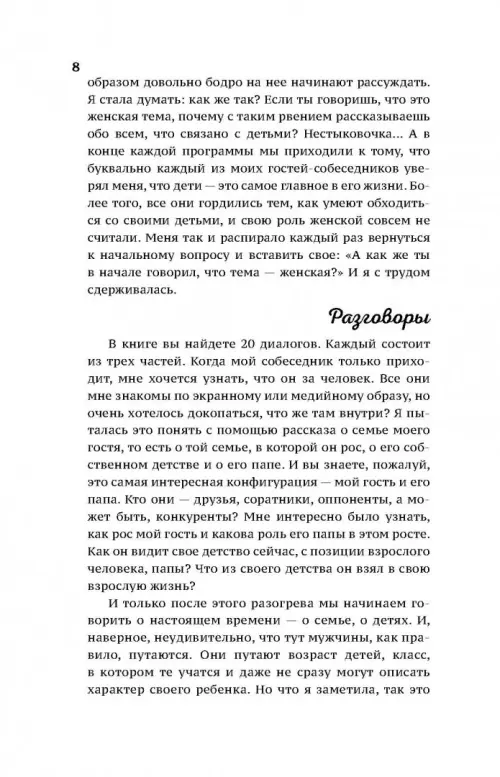 Автор книги — ведущая популярной программы «Перекрестный отец», певица, мама пятерых детей — Лина Милович попыталась основательно разобраться в этом вопросе. К ней в студию приходили знаменитые папы: артисты, писатели, певцы, музыканты, шоумены, рестораторы — причем некоторые из них — достойные продолжатели известных династий. Они предельно откровенно рассказывали о себе: о детстве и становлении личности, об отношениях со своими, не менее именитыми отцами, о роли семьи, ну и, конечно же, о собственных детях…