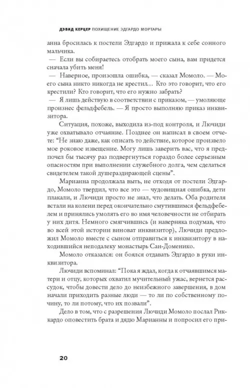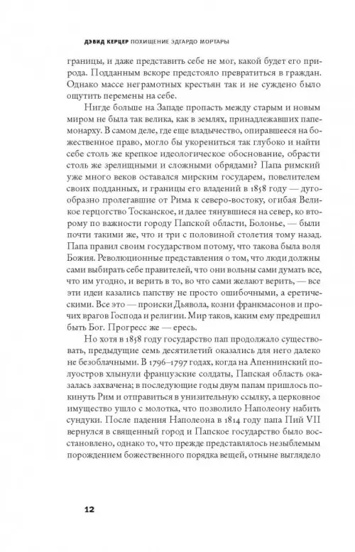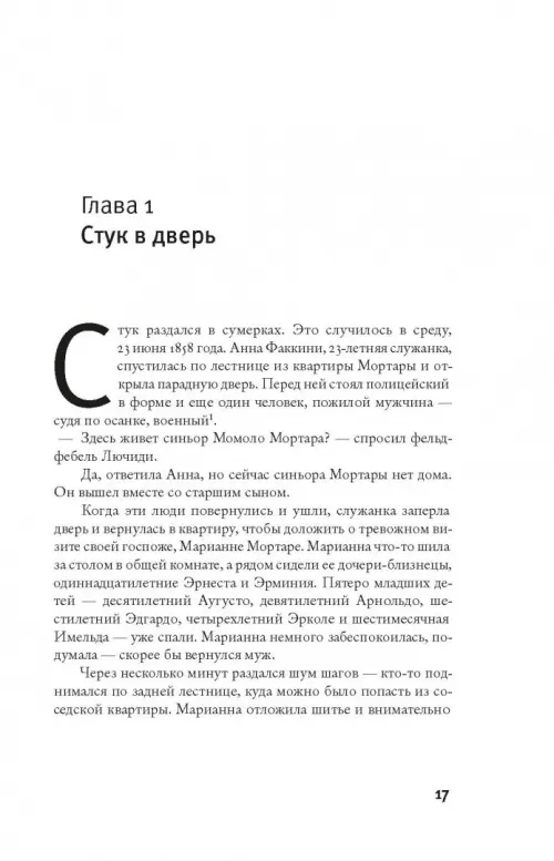 В XIX веке католический мир переживал сложные времена: режимы, существовавшие столетиями, трещали по швам, смертельную угрозу папской власти представляли приверженцы Просвещения и Французской революции, вызов незыблемым основам веры бросала наука. И вот 23 июня 1858 года в болонский дом Соломоне и Марианны Мортара прибыли полицейские – их целью был шестилетний Эдгардо Мортара. Служанка, боясь за жизнь мальчика, перенесшего недавно тяжелую болезнь, крестила его, а по закону папской области евреям, проживающим на ее территории, запрещено было воспитывать детей-католиков. Несмотря на все увещевания отца и слезы матери ребенка забрали и отправили в Рим. Так началась череда событий, навсегда изменивших Италию и ставших одной из важнейших вех в борьбе за свободу вероисповедания и права человека.