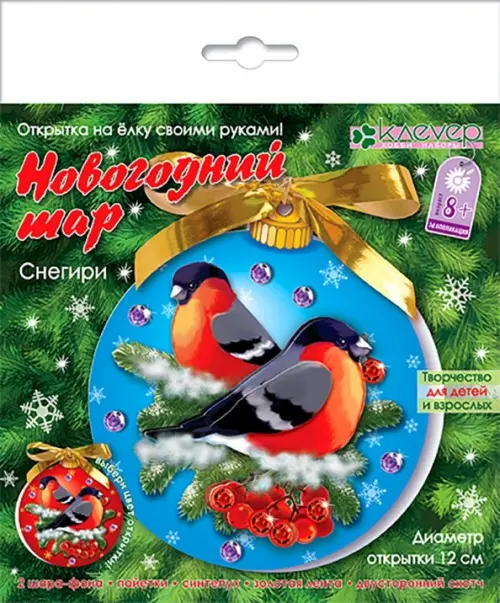 Набор для изготовления новогодней открытки. Новогодний шар. Снегири