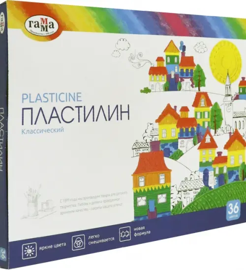 Набор цветного пластилина из 36 цветов. Яркие и сочные цвета. Не липнет к рукам, не оставляет жирных пятен. Цвета легко смешиваются. В комплекте идет пластиковый стек.