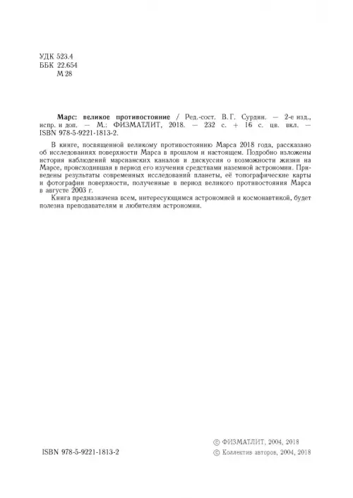 В книге рассказано об исследованиях поверхности Марса в прошлом и настоящем. Подробно изложены история наблюдений марсианских каналов и дискуссия о возможности жизни на Марсе, происходившая в период его изучения средствами наземной астрономии. Приведены результаты современных исследований планеты, её топографические карты и фотографии поверхности, полученные в период великого противостояния Марса в августе 2003 г. Книга предназначена для всех, интересующихся астрономией и космонавтикой. Будет полезна преподавателям и любителям астрономии.