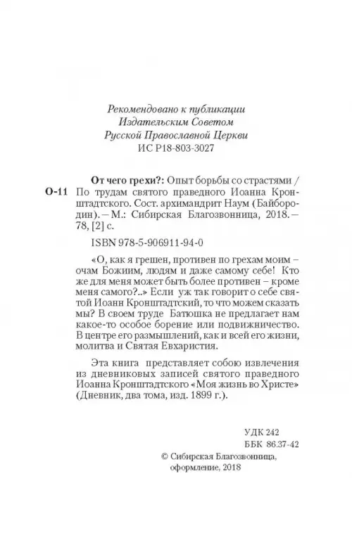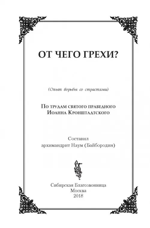 Если вы обнаружили ошибку в описании товара «От чего грехи? Опыт борьбы со страстями» (авторы: Святой праведный Иоанн Кронштадтский), то выделите её мышкой и нажмите Ctrl+Enter. Спасибо, что помогаете нам стать лучше!