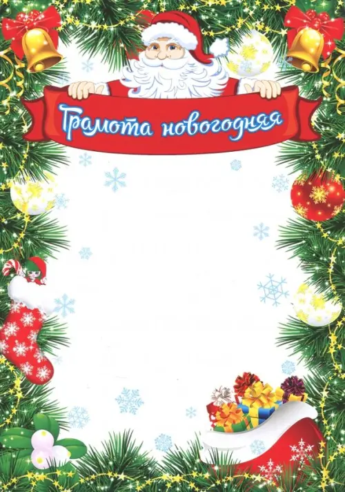 Грамота новогодняя. Формат: А4. Материал: мелованный картон.