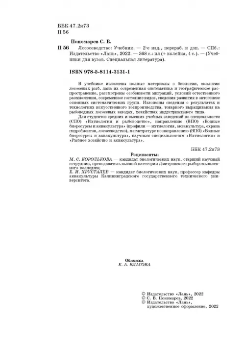 Если вы обнаружили ошибку в описании товара «Лососеводство. Учебник» (авторы: Пономарев Сергей Владимирович), то выделите её мышкой и нажмите Ctrl+Enter. Спасибо, что помогаете нам стать лучше!