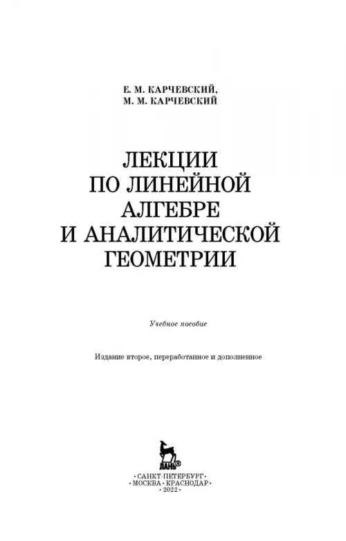 Если вы обнаружили ошибку в описании товара «Лекции по линейной алгебре и аналитической геометрии. Учебное пособие» (авторы: Карчевский Михаил Миронович, Карчевский Евгений Михайлович), то выделите её мышкой и нажмите Ctrl+Enter. Спасибо, что помогаете нам стать лучше!