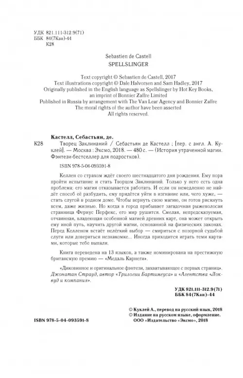 Если вы обнаружили ошибку в описании товара «Творец Заклинаний» (авторы: де Кастелл Себастьян), то выделите её мышкой и нажмите Ctrl+Enter. Спасибо, что помогаете нам стать лучше!