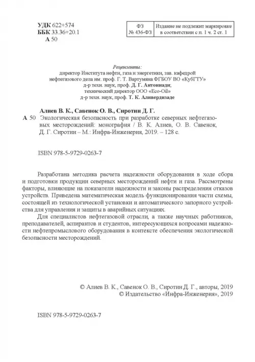 Если вы обнаружили ошибку в описании товара «Экологическая безопасность при разработке северных нефтегазовых месторождений» (авторы: Алиев Владимир Кязимович, Савенок Ольга Вадимовна, Сиротин Денис Геннадиевич), то выделите её мышкой и нажмите Ctrl+Enter. Спасибо, что помогаете нам стать лучше!