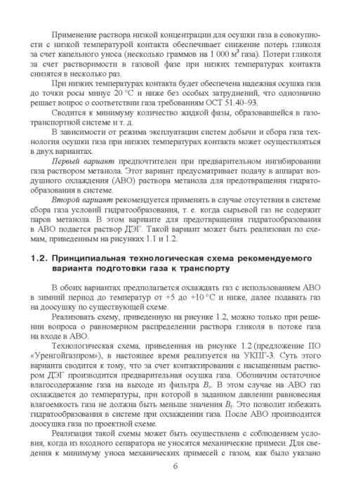 рекомендуемого варианта подготовки газа к