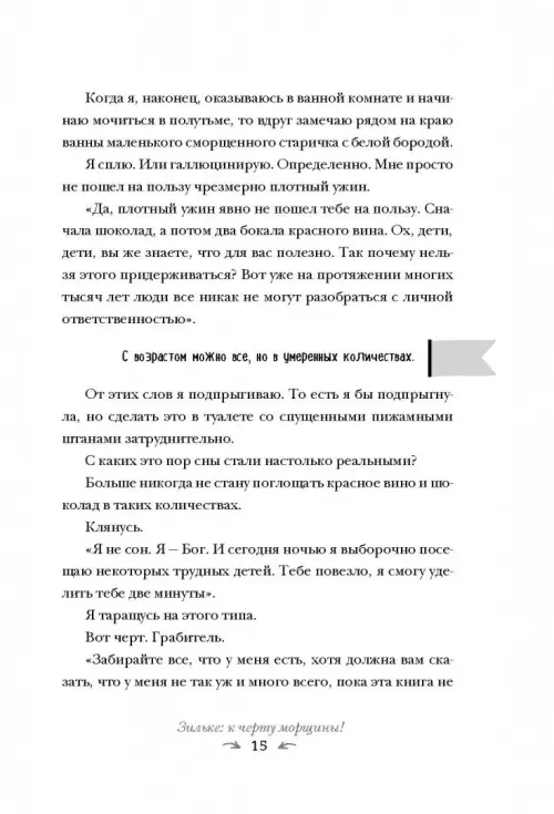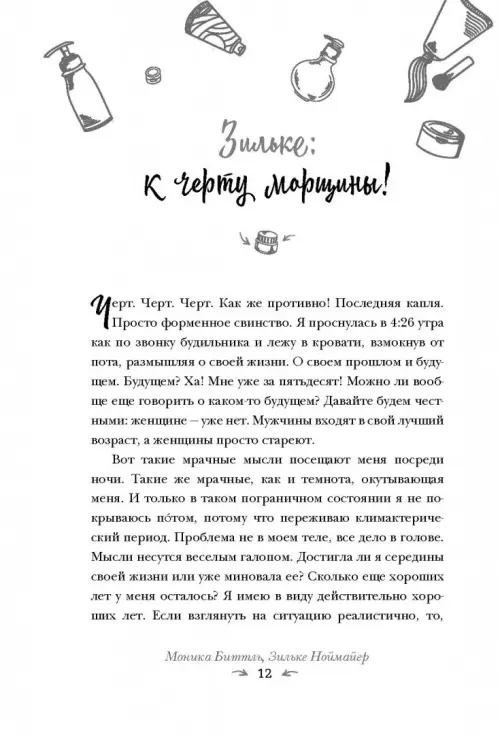 Забудьте о морщинах! Они появляются на лице только от смеха. 50 коротких рассказов из этой книги научат воспринимать вещи, которые невозможно изменить, с юмором и придаст вам уверенности в себе. Они затрагивают такие актуальные темы, как: морщины, изменения фигуры, отношения с мужчинами, первые очки для чтения, пластические операции, климакс, какую одежду уже не стоит носить и многое-многое другое.