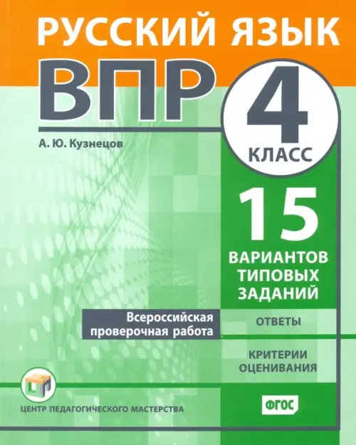 Пособие предназначено для подготовки к Всероссийской проверочной работе (ВПР) по русскому языку для учащихся 4 класса и содержит 15 вариантов типовых заданий, ответы и критерии оценивания.
